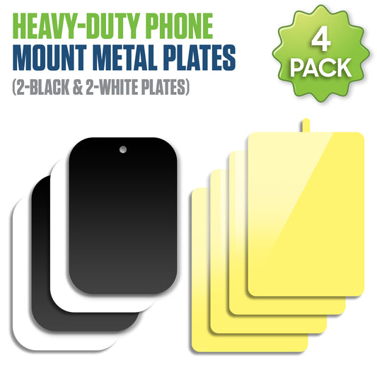CLCMETALP4 - Heavy-Duty Magnetic Phone Mount Metal Plates 4 Pack - 2 Black & 2 White Adhesive Plates for Magnetic Car Mounts, Universal Thin Rectangular Metal Stickers with Protective Film for iPhone & Android