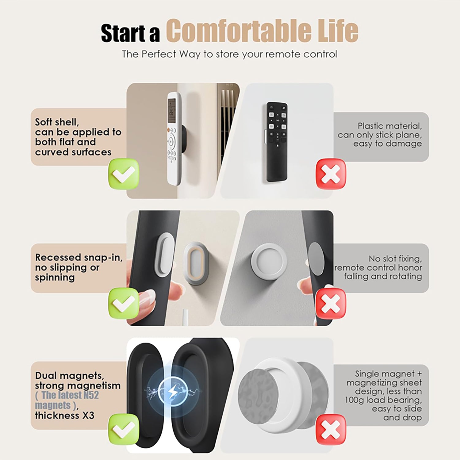 ⭐ STRONG N52 MAGNETIC HOLD – 💪 Built with upgraded N52 rare-earth magnets for secure attachment. Prevents remotes from falling, sliding, or getting lost — even on smooth surfaces.