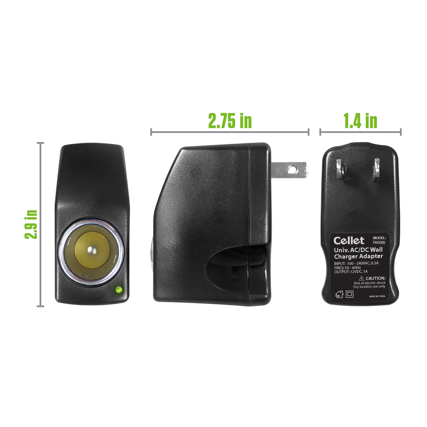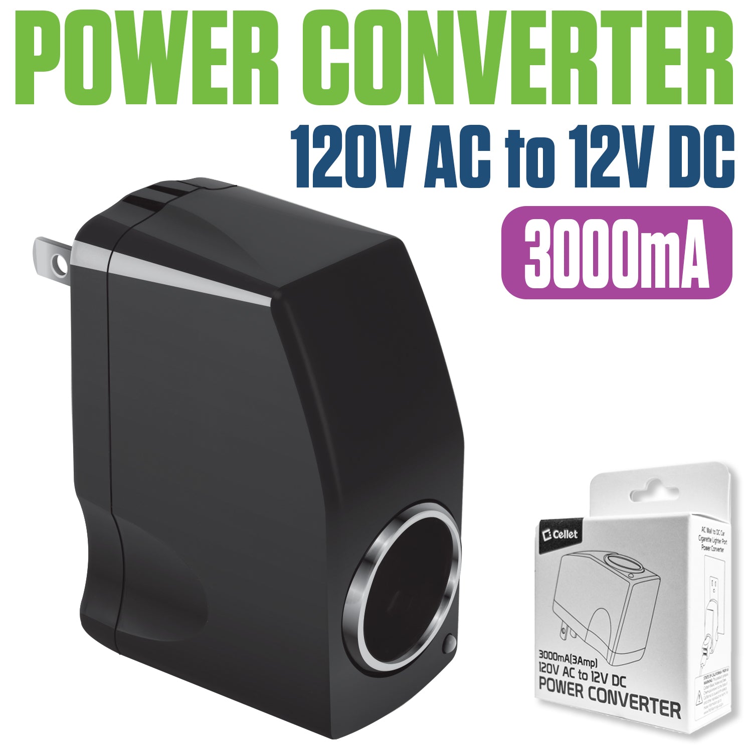 FM3000 - Cellet 120V AC to 12V DC Power Converter Adapter, 3000mA (3A) Output, Cigarette Lighter Socket Plug – Converts Home Wall Outlet to Car Charger Port for Smartphones, GPS, Cameras, Tablets, MP3 Devices