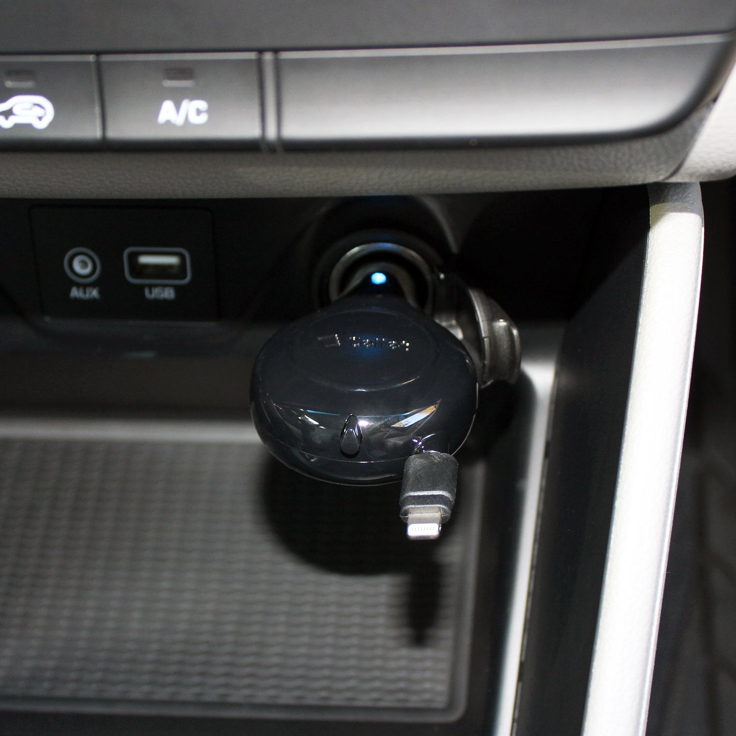 - 3-foot integrated cable with Lightning connector / Original retractable design: patent pending