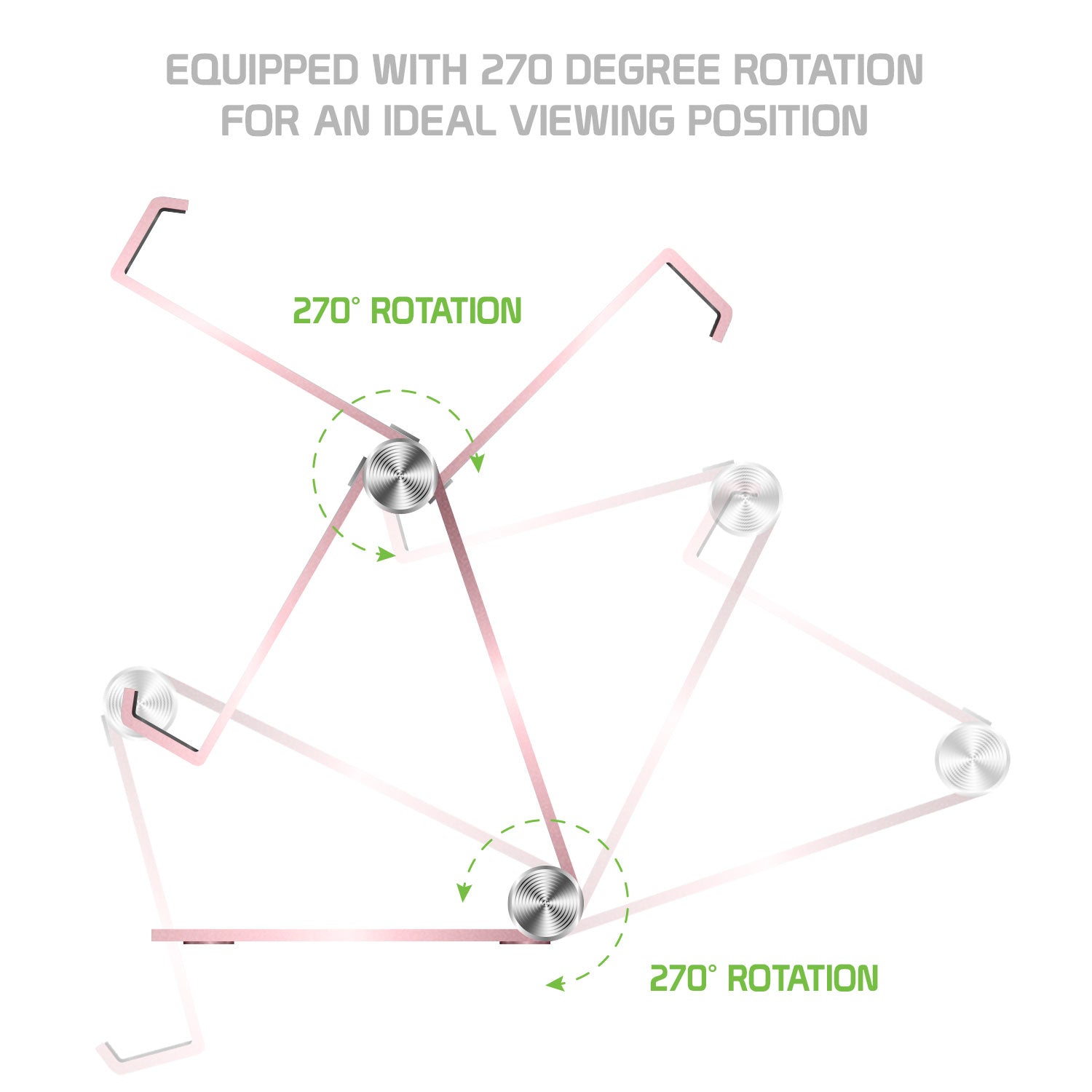 PHALURG_FA - Adjustable Desktop Stand, Heavy Duty Adjustable Aluminum stand with 270 Degree Rotation for Smartphones, Tablets, iPads and Nintendo Switch – Rose Gold