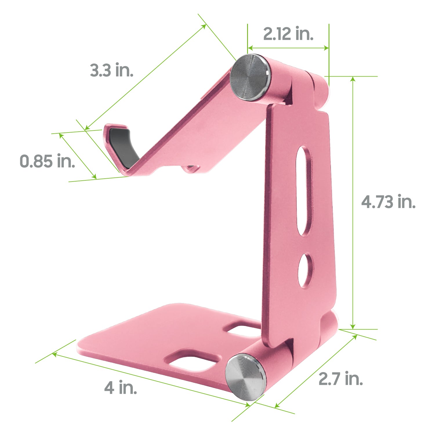 - The foldable design makes it easier to store and carry just about anywhere. Resilient Aluminum C made stand 5 in, 4 x 5.5, and about 1.24 lbs.