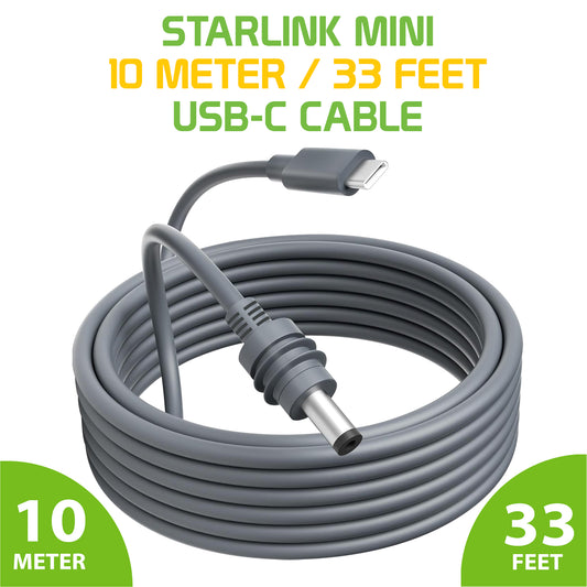 DASTRMINI10M - 10-Meter / 33-Feet Starlink Mini USB-C to DC Power Cable Cord 100W Input USB Type C to DC Cable, DC Power Cable Direct to USB-C for Starlink Mini Work with 100W+ PD Source Waterproof 18AWG (Copy) (Copy)